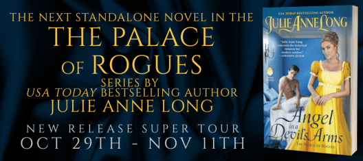 To celebrate the release of ANGEL IN A DEVIL’S ARMS by Julie Anne Long, we’re giving away a paperback copy of Lady Derring Takes a Lover by Julie Anne Long!